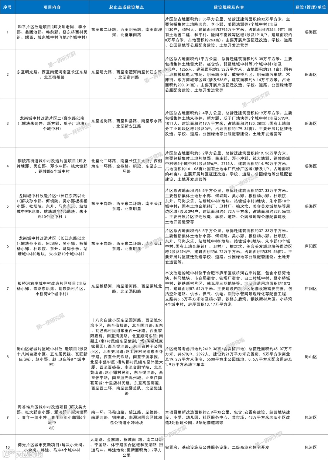 2024年计划实施10大片区、53个城中村改造,分别是: