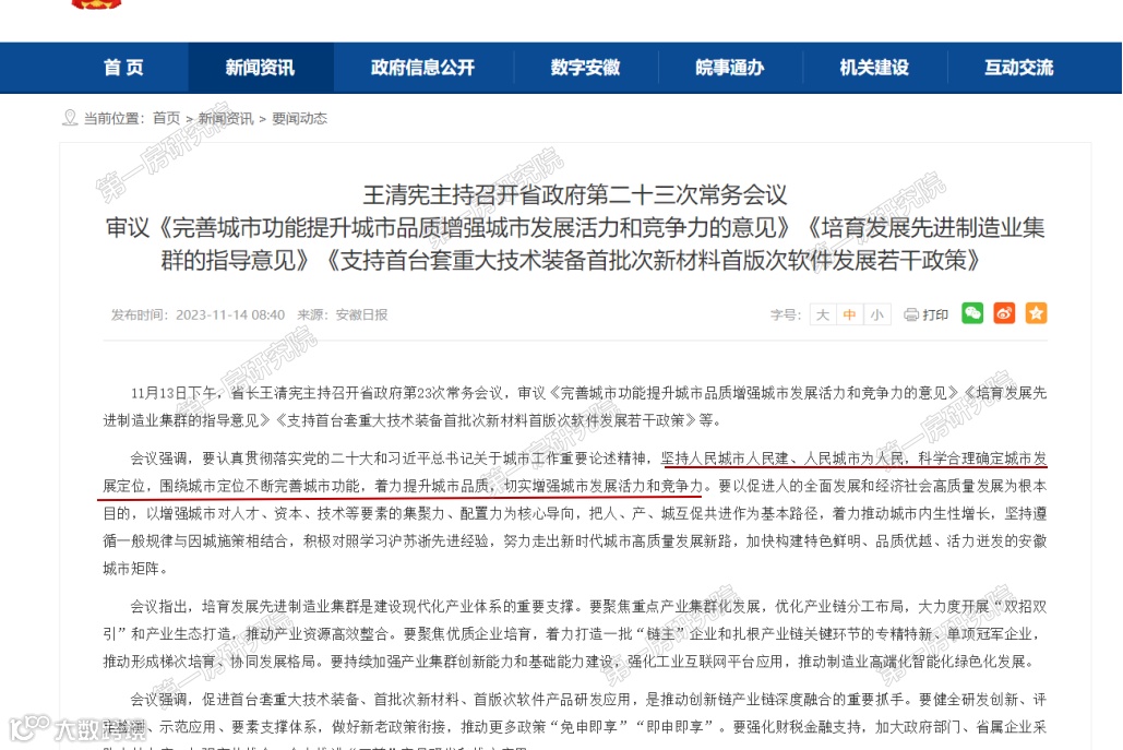 另一方面,在安徽省政府第23次常务会议上,关于《完善城市功能提升城市品质增强城市发展活力和竞争力的意见》中提到,坚持人民城市人民建、人民城市为人民,科学合理确定城市发展定位,围绕城市定位不断完善城市功能,着力提升城市品质,切实增强城市发展活力和竞争力。这里不难看出,对于安徽的房地产业而言,2024年,城市功能品质提升是一个崭新的赛道。