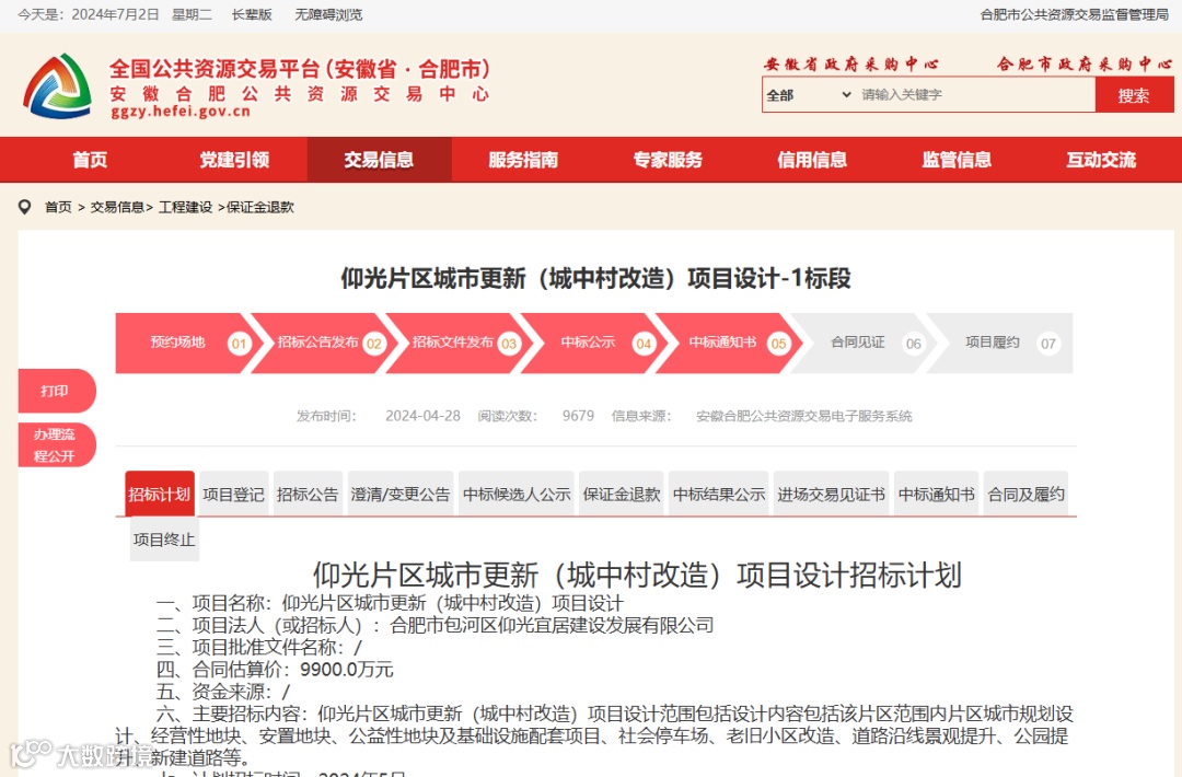 仰光片区城市更新最新进展来了!7月1日,据合肥公共资源交易中心消息,仰光片区城市更新(城中村改造)项目设计1标段完成招标,拟将对南二环、金寨路沿线进行整治,并对常青体育公园等整治提升,配套新建街头游园9万平方米。