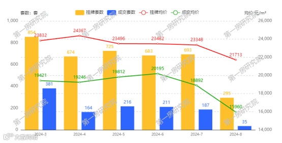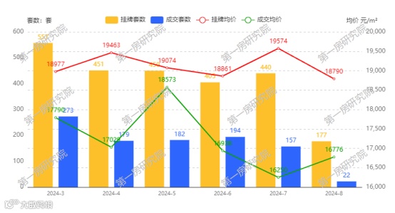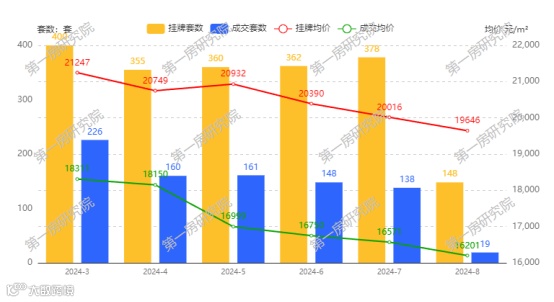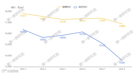 高新区不论挂牌价还是成交价格,均呈现下跌趋势,截止目前,8月高新区成交价格1.6万/㎡,挂牌价格也跌破2万/㎡。