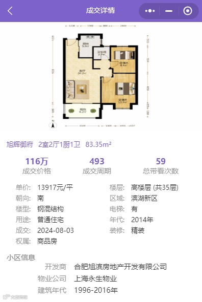 滨湖旭辉御府本月成交一套83㎡户型,均价仅1.39万/㎡。