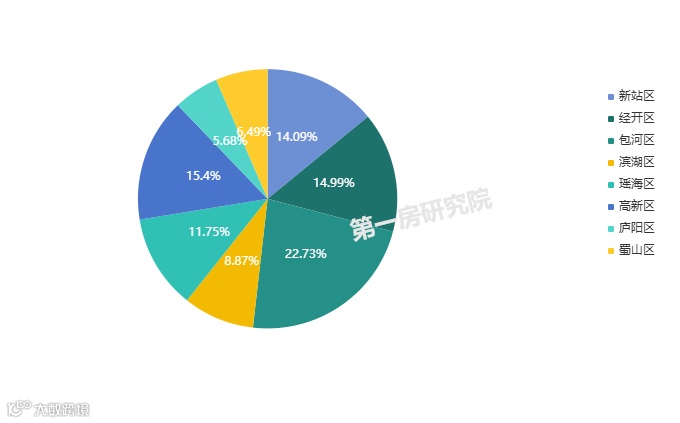 分区域来看,包河区成交面积占比22.73%,九区排名第一。高新区成交面积占比15.4%,九区排名第二。经开区成交面积占比14.99%,九区排名第三。