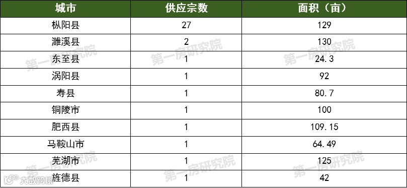 本周安徽省16地市中涉宅用地挂地城市较多,共10个市县挂地,挂地宗数37宗,总面积896.64亩。