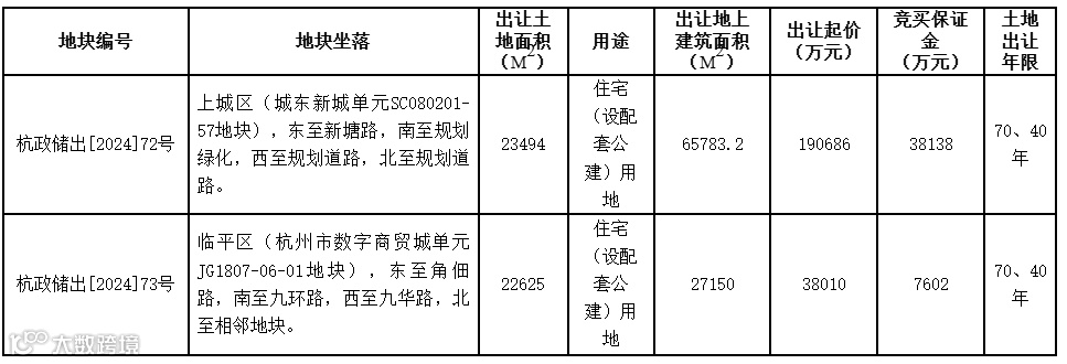 杭州挂出2宗涉宅用地,挂牌截至时间7月23日