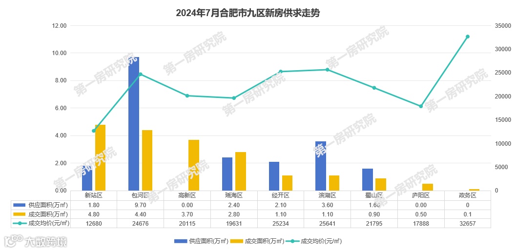 2024年7月合肥九区当中新房成交排行前三的是新站、包河、高新。
