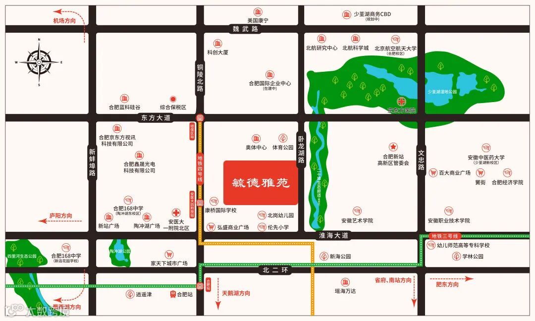 文渊府占据政务圈市府中轴线,根据2024年合肥各区学区划分公示方案,小学和初中分别为湖东小学、五十中天鹅湖蜀外校区。学校资源也是十分雄厚,周边有万象城、银泰城、天鹅湖万达等的醇熟商业。