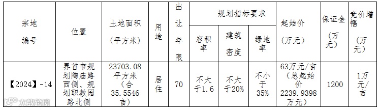 【2024】-14号宗地建筑高度不大于60米; 约定开工