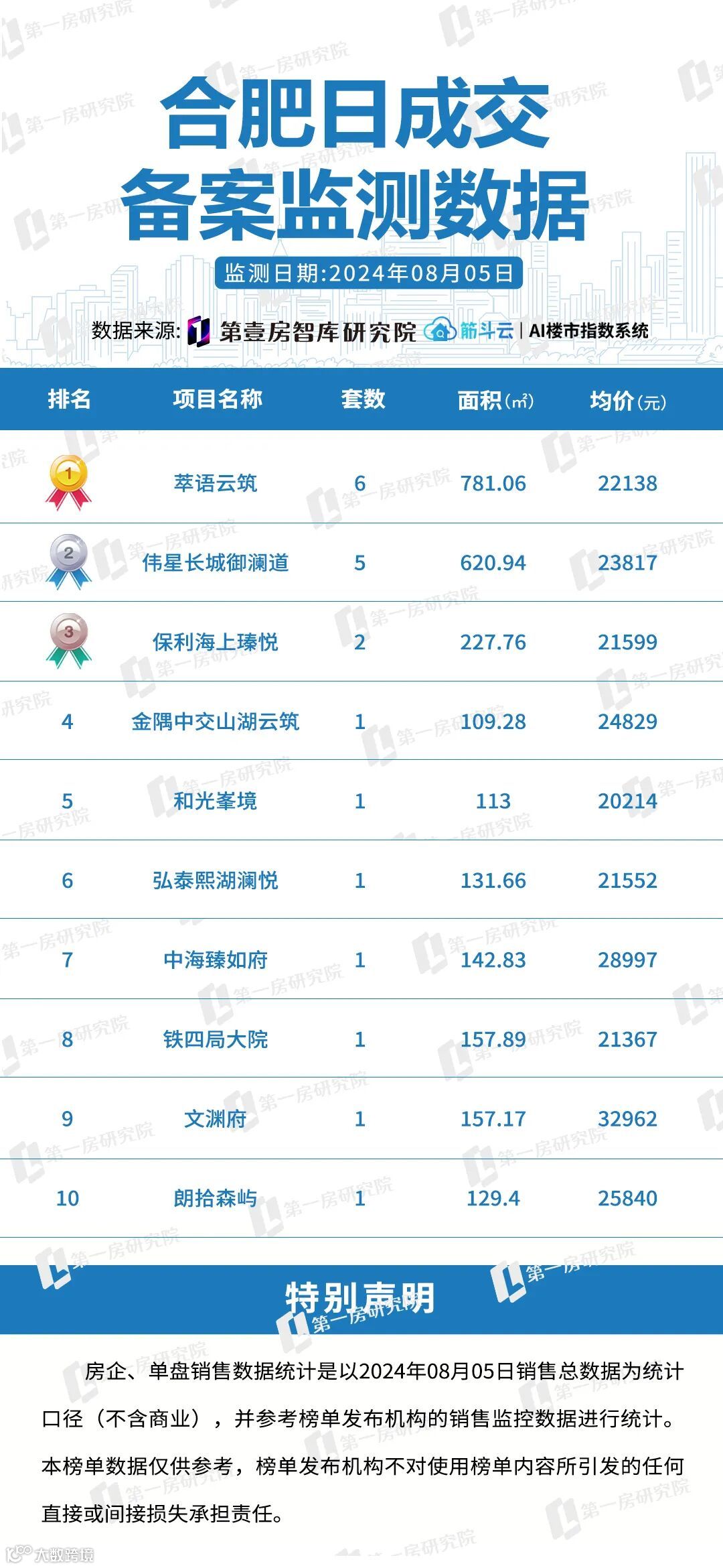 8月5日合肥市区备案住宅类商品房20套,备案均价21363元/㎡