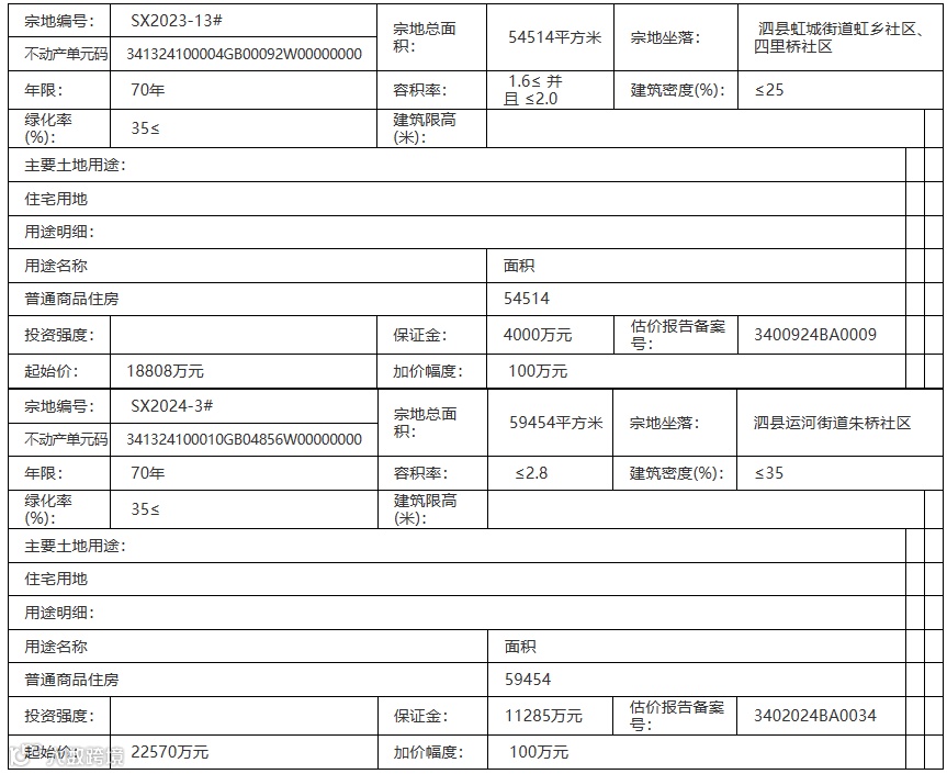 六、本次国有土地使用权拍卖活动定于在2024年04月12日 15时00分在泗县公共资源交易中心 进行。