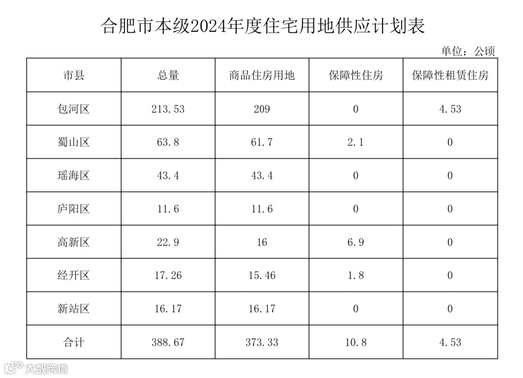 合肥市 2024 年度市本级国有建设用地供应计划总量为 1990公顷。