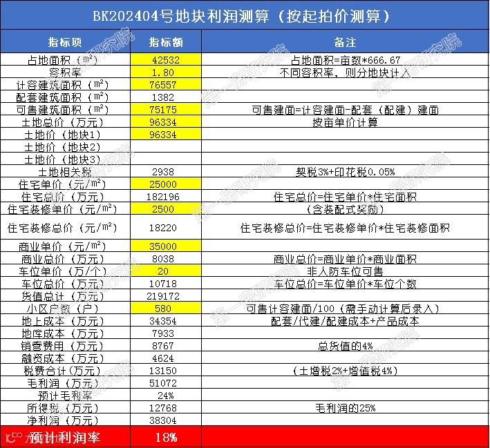 从利润测算的角度来看,参考周边售价,该地块按比较保守的情况来考虑,按新房精装修2.9万/㎡计算,测算静态利润为11%,起拍价下利润比较可观,预计后期房企关注度会相对较高。