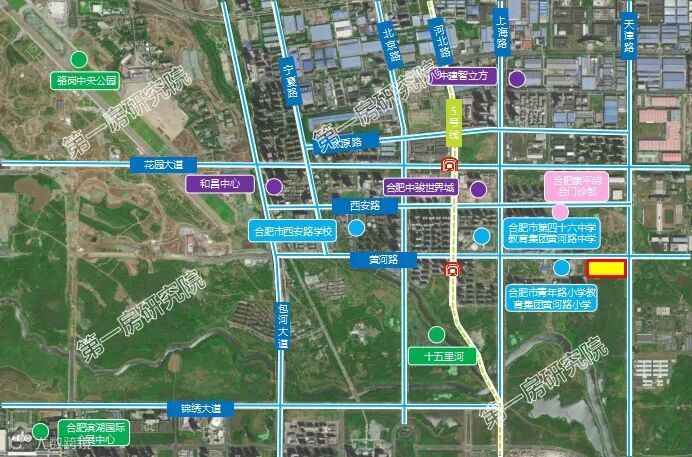 教育方面,地块西侧紧邻合肥市青年路小学教育集团黄河路小学,1公里内有合肥市第四十六中学教育集团黄河路中学,教育资源完备。