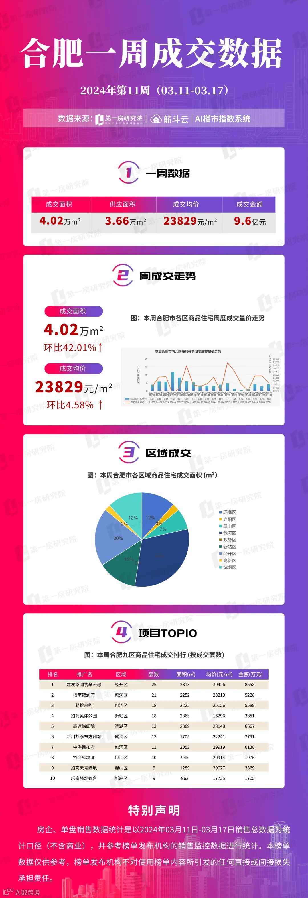 2024年第11周合肥市区住宅成交312套 建发华润翡翠云璟成交25套居榜首