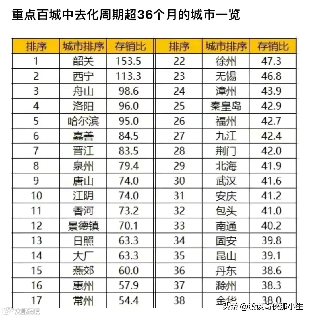 根据上海易居研究院的数据统计,截至3月份,全国百城新建商品住宅库存去化周期即存销比为25.3个月,明显高于合理值范围。在百城样本城市中,有41个城市去化周期超过36个月,多为三四线城市。这些城市由于经济发展相对滞后、人口吸引力不足等原因,导致房地产市场供大于求,库存压力较大。