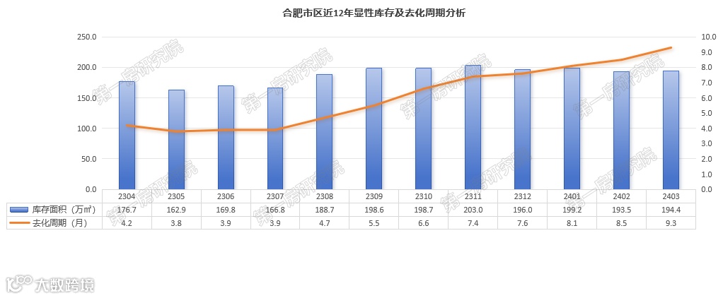 显性存量方面,按近6个月的月均去化计算,近12个月合肥显性存量在187万㎡左右,平均去化周期6个月左右,月去化周期呈上升趋势,但整体存量及去化周期相对可控。虽然2月成交量有明显上升,但存量市场并未得到明显改善。