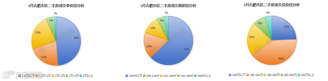 从3月合肥市区二手房结构性成交来看,1.6万的房源占比接近5成,100㎡以上的房源成交占比超6成,100-180万、100万以下、180-280万总价段的房源为二手房成交中坚力量。通过以上数据不难看出,3月合肥二手房依然是以低单价、低总价、小面积的房源为主。市场购房群体以刚需为主,其次是刚改。
