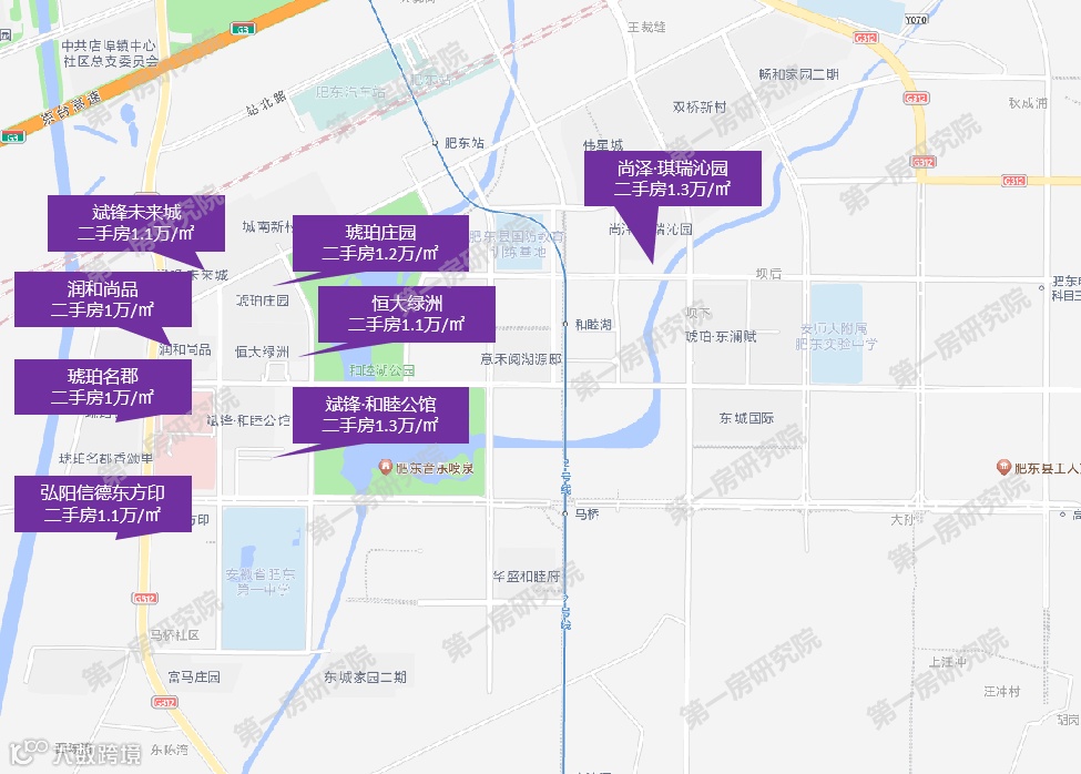 二手房方面,目前和睦湖板块二手房挂价在1.1-1.3万/㎡之间,与新房价格几乎持平,主要集中在和睦湖西侧。
