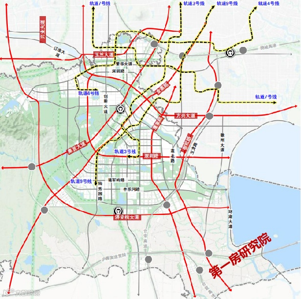 在交通方面,南北方向有金寨路、集贤路等城市主干道,可快速到达经开区、政务区、老城区;东西方向有方兴大道、创新大道、深圳路等城市主干道,连接高新、滨湖。同时,区域内规划4条地铁线路,3号线南延线已于2023年年底通车,4号线南延线也将与今年通车运营,同时还规划7号线二期、9号线,与市区连接更加密切。