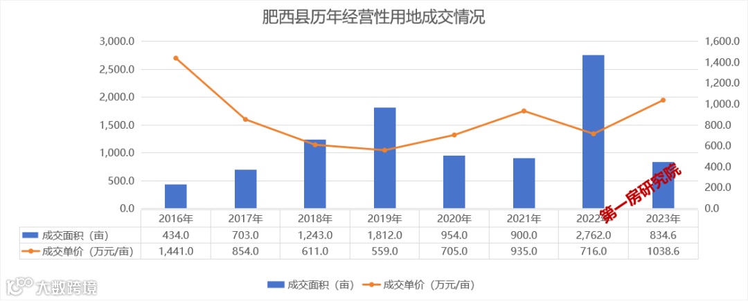 近6年,肥西县涉宅用地年均成交量1008亩,2022年成交2762亩,对比2021年全年增长207%,土地规模翻近三倍,成交均价相对稳定,平均年成交均价稳定在746万/亩。