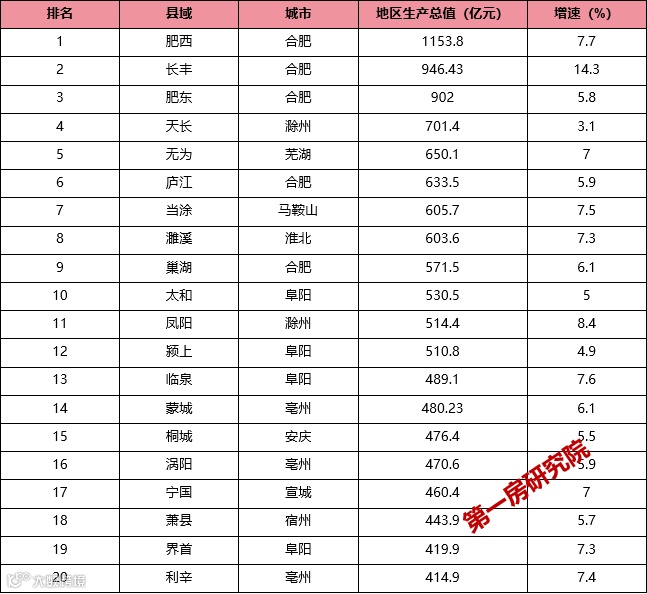 随着安徽各县(市)发布2023年经济运行数据,安徽县域经济总量20强榜单出炉。