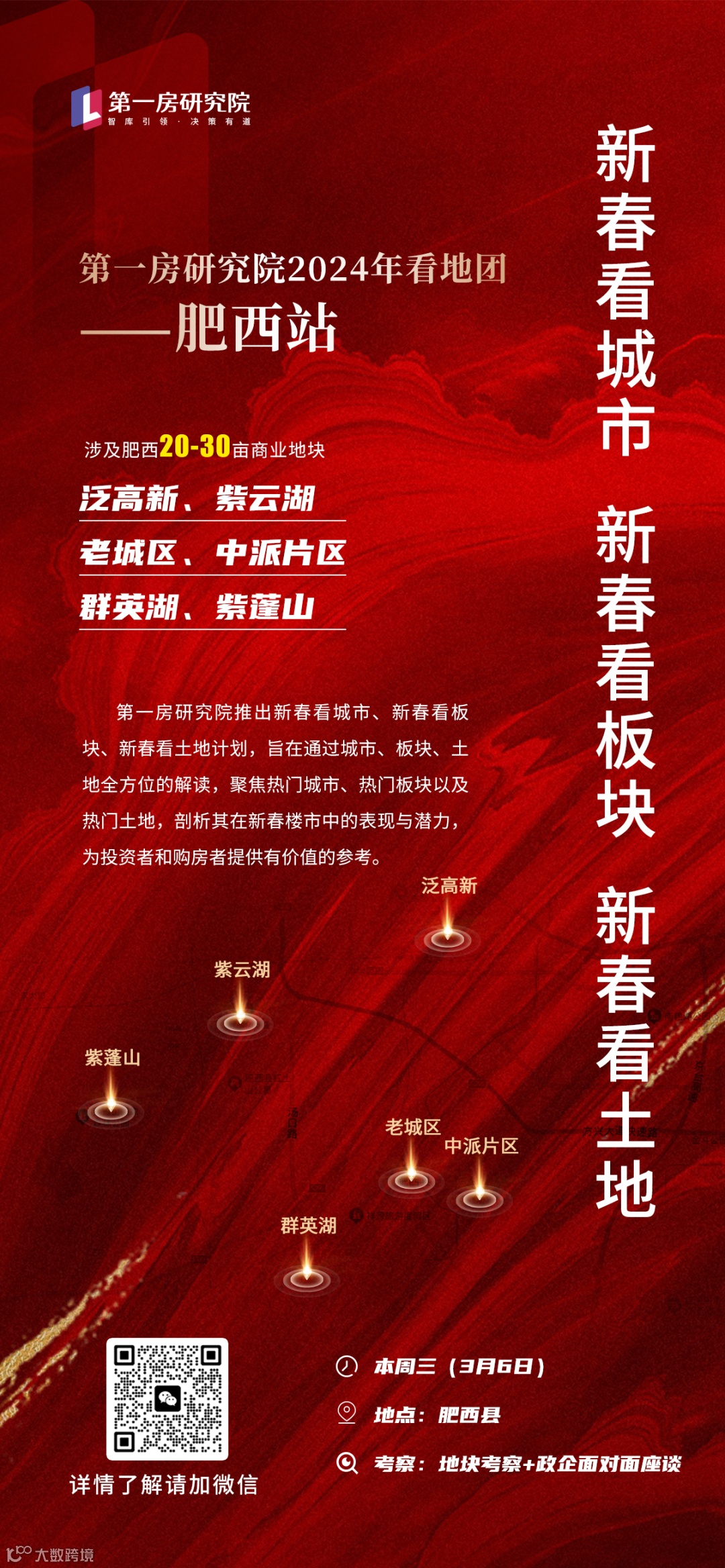 本周三(3月6日)下午,由第一房研究院组织的新春看土地肥西站正式举行,本次看地主要涉及20-30亩商业地块,看地结束后将会举行小型座谈会,面对面政企交流。