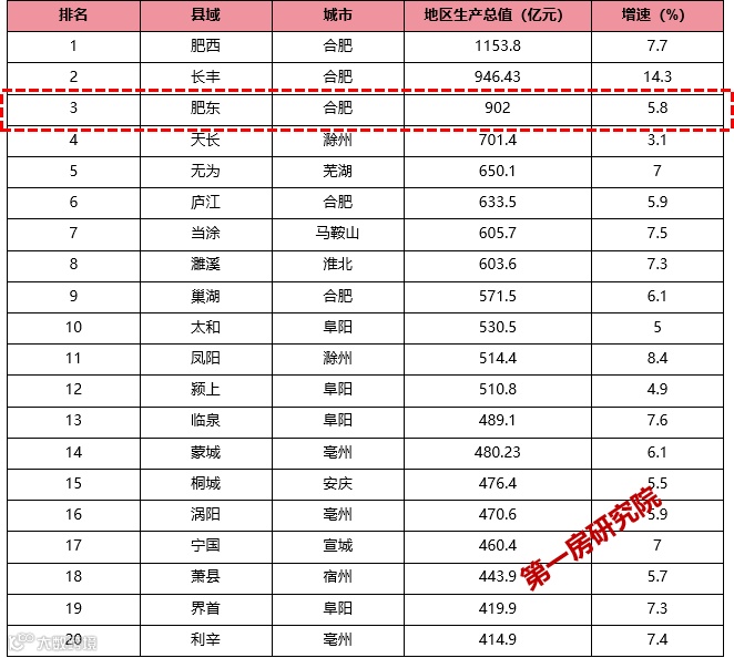 近日,随着安徽各县(市)发布2023年经济运行数据,安徽县域经济总量20强榜单出炉。肥东仅次于肥西、长丰,以902亿元排名第三,增速5.8%。迈入“千亿县”,是县域经济发展的一个重要里程碑,不仅是县域经济的领跑者,更代表着县域经济的实力。能够迈入“千亿县”,正在成为众多县域的战略目标。因此,继肥西之后,谁将是安徽下一个“千亿县”,备受关注。从目前发展态势来看,肥东有望成为下一个千亿县。