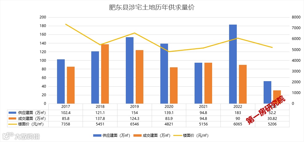 据第一房研究院Ai楼市指数系统显示,肥东县近7年年均供应120.94万㎡,年均成交92.49万㎡,供应成交率76.5%。受整体市场下行影响,房企聚集核心区域,边缘板块市场渐冷。