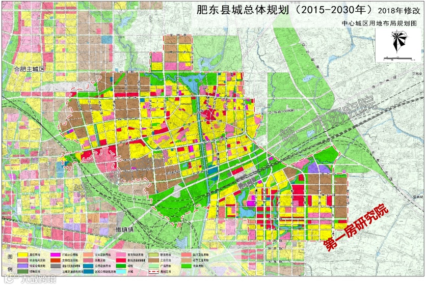 “一心”:和睦湖片区、老县城片区、肥东经开区老片区、撮镇片区为主体的城市“中心”。