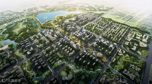 区别过去过于简单的城市空间与生态绿野二元对立的设计手法,本次设计将无界交融作为纲领主旨,主张全域全要素的本底分析评价,依附近9平方公里的底盘生境,顺应“田园+都市”理念,打造一座生长在田园里的新城,实现“人、城、境、业和谐统一”。
