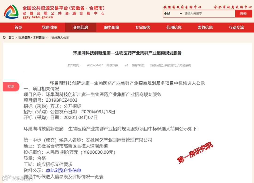 作为合肥市的重点发展项目,一批批的产业项目不断落地,相应的配套服务设施也在完善中。2020年4月,环巢湖科技创新走廊—生物医药产业集群产业招商规划服务项目中标候选人公示。