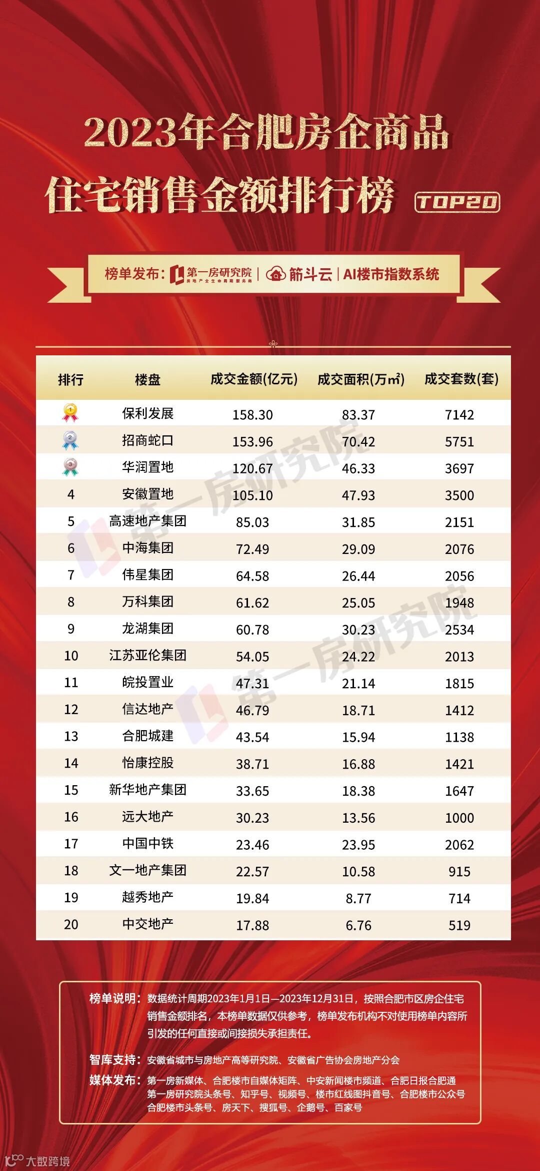 2023年合肥房企商品住宅销售金额排行榜