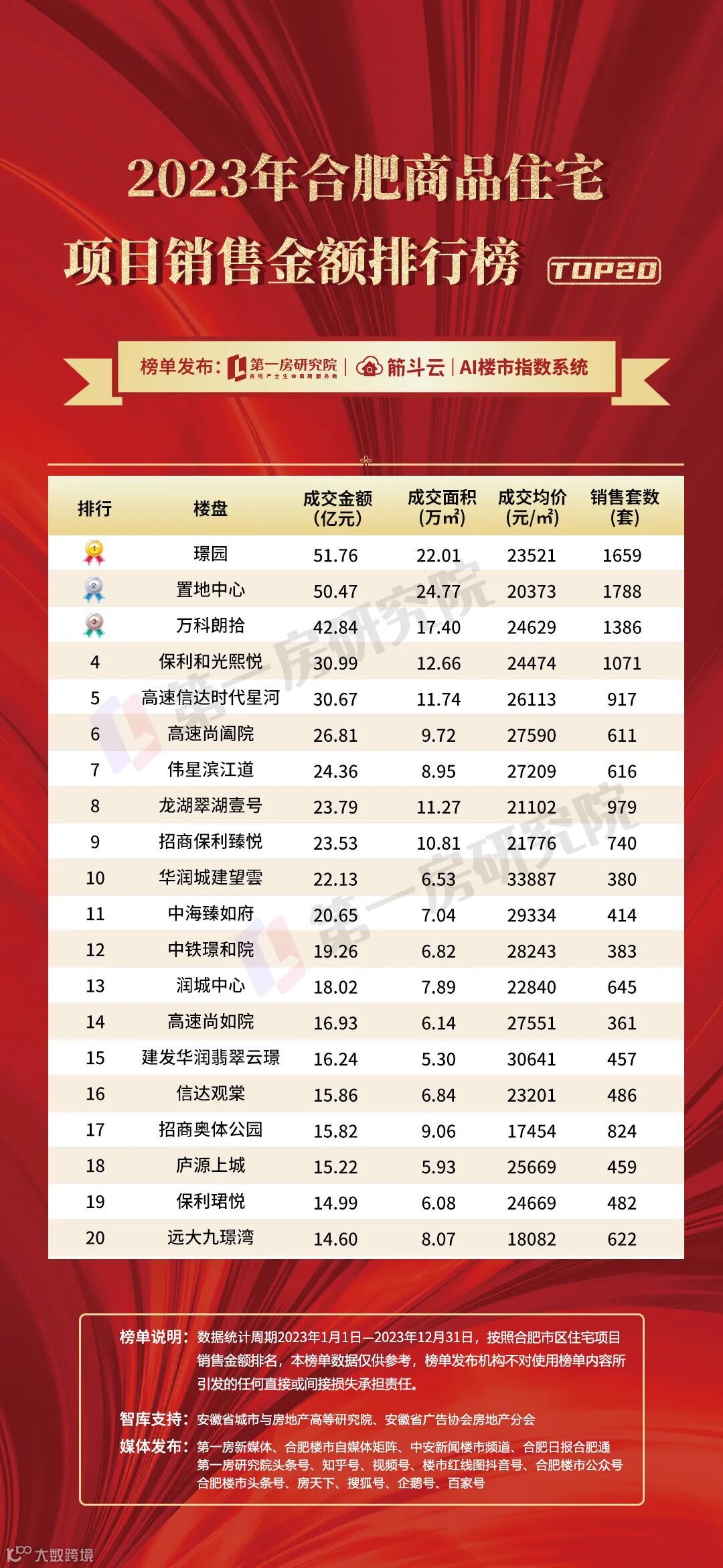 2023年合肥区域商品房住宅销售金额排行榜