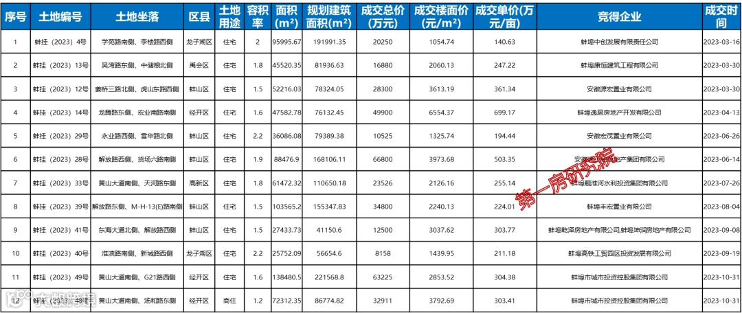 结合今年的出让计划和土地成交情况,预测明年将有以下11宗1495.4亩居住地块待出让,主要分布在蚌山区。
