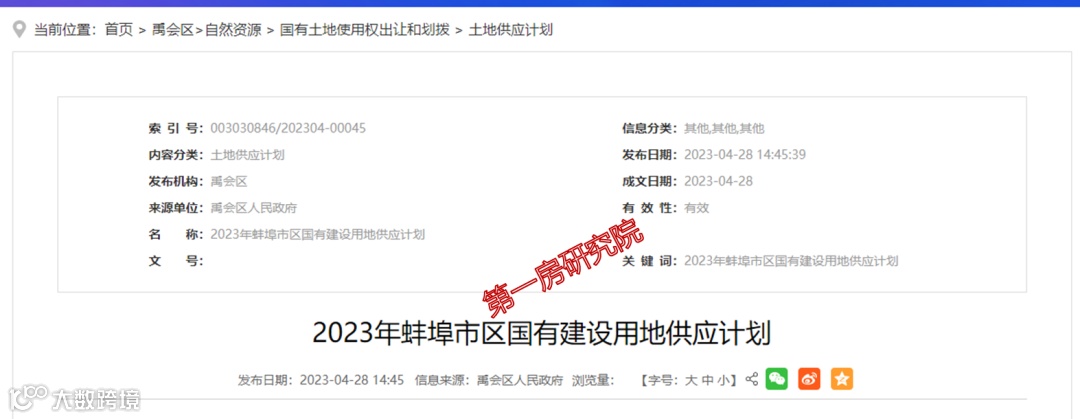 今年4月份,蚌埠市政府曾发布一份2023年蚌埠市区国有建设用地供应计划,合计18宗地块,面积达到2287.01亩。