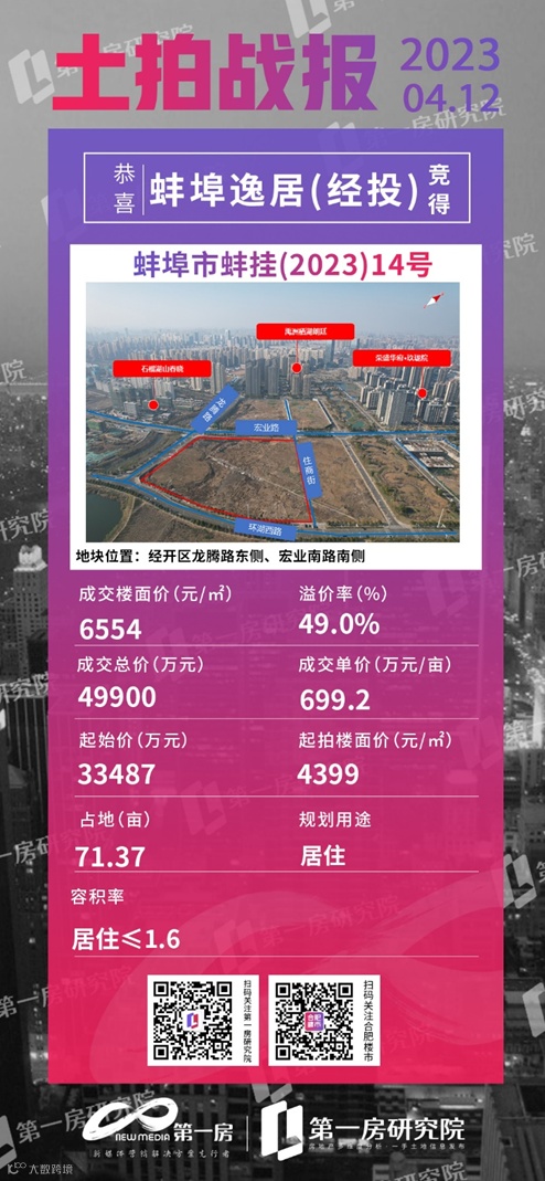 今年蚌埠土地市场中表现较为亮眼的就是位于经开区的蚌挂(2023)14号地块,居住用地,该宗地块位于龙腾路东侧、宏业南路南侧,地理位置十分优越。可以说是滨湖板块最后一宗面积较大的居住地块,其余地方基本已无空缺。该宗地块整体形状较为方正,容积率为1.6,且限高36米,大概率又是一个以大平层、洋房和叠墅为主的高端改善项目。