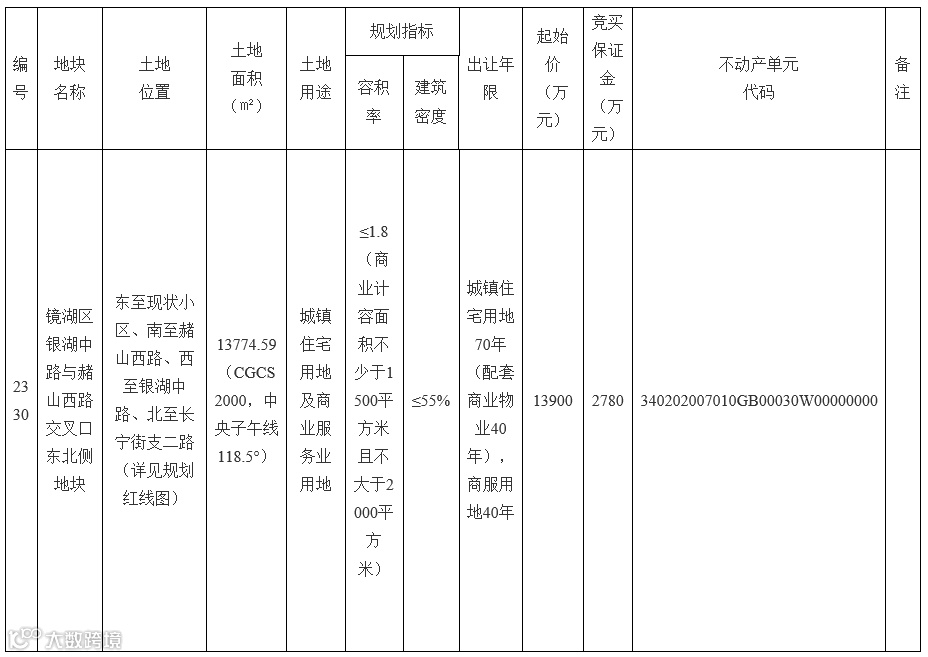 芜湖暂定1月9日拍卖1宗涉宅用地,面积20.99亩