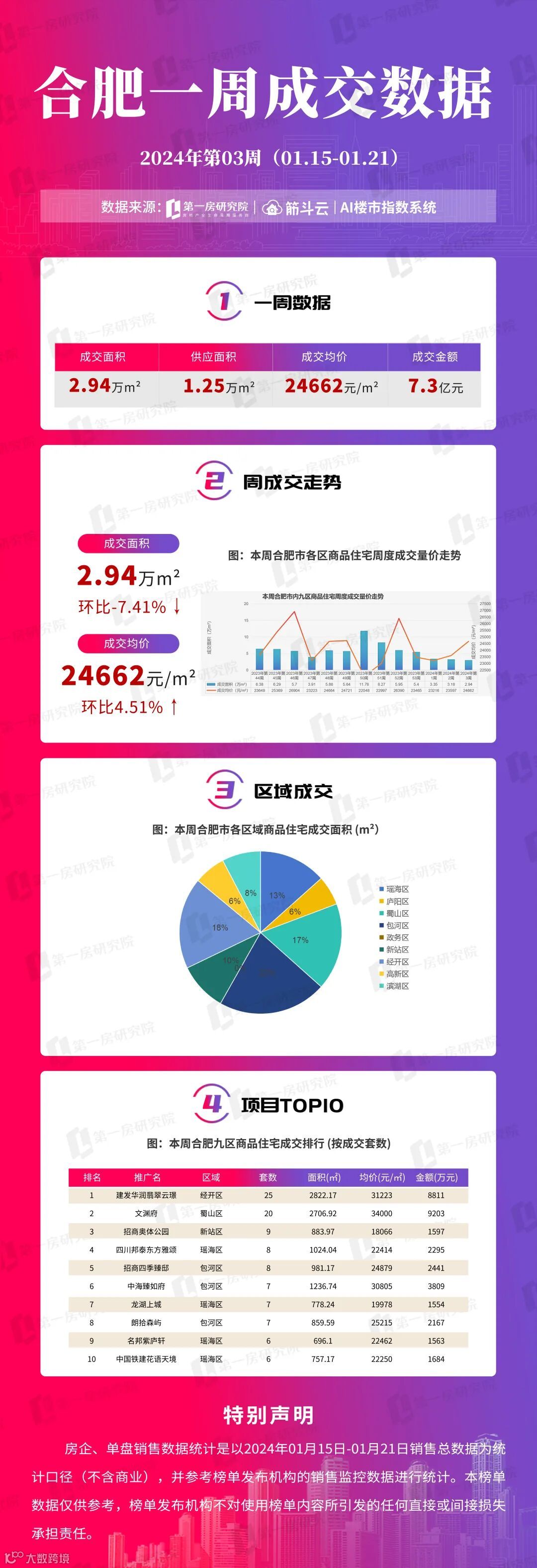 1月15日-1月21日合肥市区备案住宅类商品房228套,备案均价24649元/㎡
