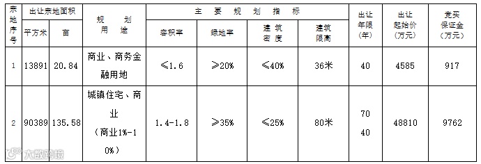 具体情况见下表(宗地详细规划指标及要求请见出让文件)