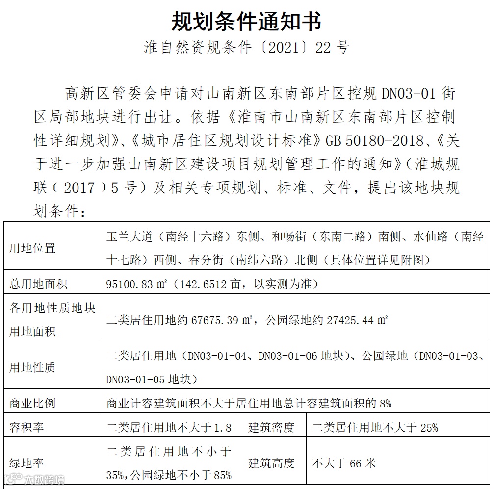 新区)玉兰大道(南经十六路)东侧、和畅街(东南二路)南侧,土地面积为142.6512亩/95100.83㎡,出让用途为城镇住宅用地、商业用地、公园绿地,出让年限为商业40年、住宅70年。每亩成交单价为178万元,成交总价为25391.9136万元,由