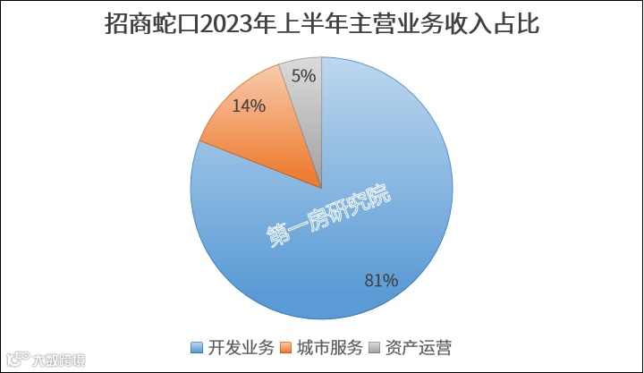 招商蛇口目前主要营收为三大业务模块,地产开发、城市服务、资产运营。根据招商蛇口2023年半年报显示,招商蛇口地产开发业务营收占比81%、城市服务业务营收占比14%、资产运营业务营收占比5%,业绩的背后是招商蛇口业务模式深化调整的结果。