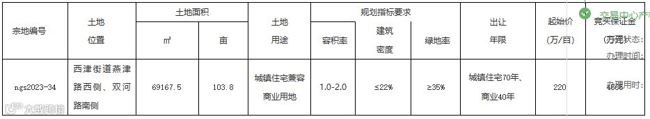 ngs2023-34号地块位于西津街道燕津路西侧、双河路南侧,出让面积69167.5平方米。该地块的建设要求需严格按照宗地规划设计条件执行(详见出让文本)。
