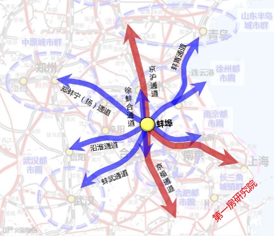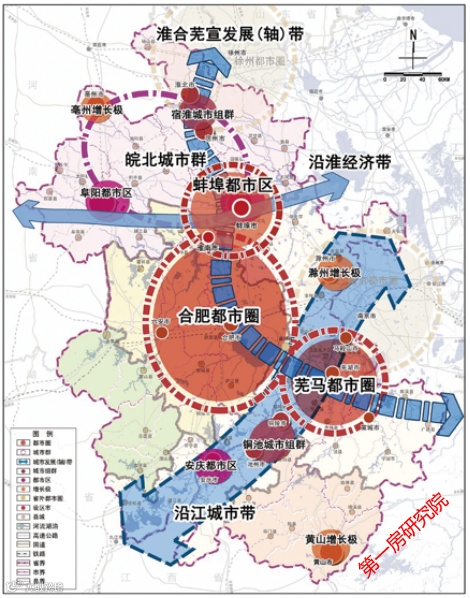 两轴:淮宿蚌、亳蚌滁宁两条城镇发展轴,辐射带动固镇县和怀远县发展。