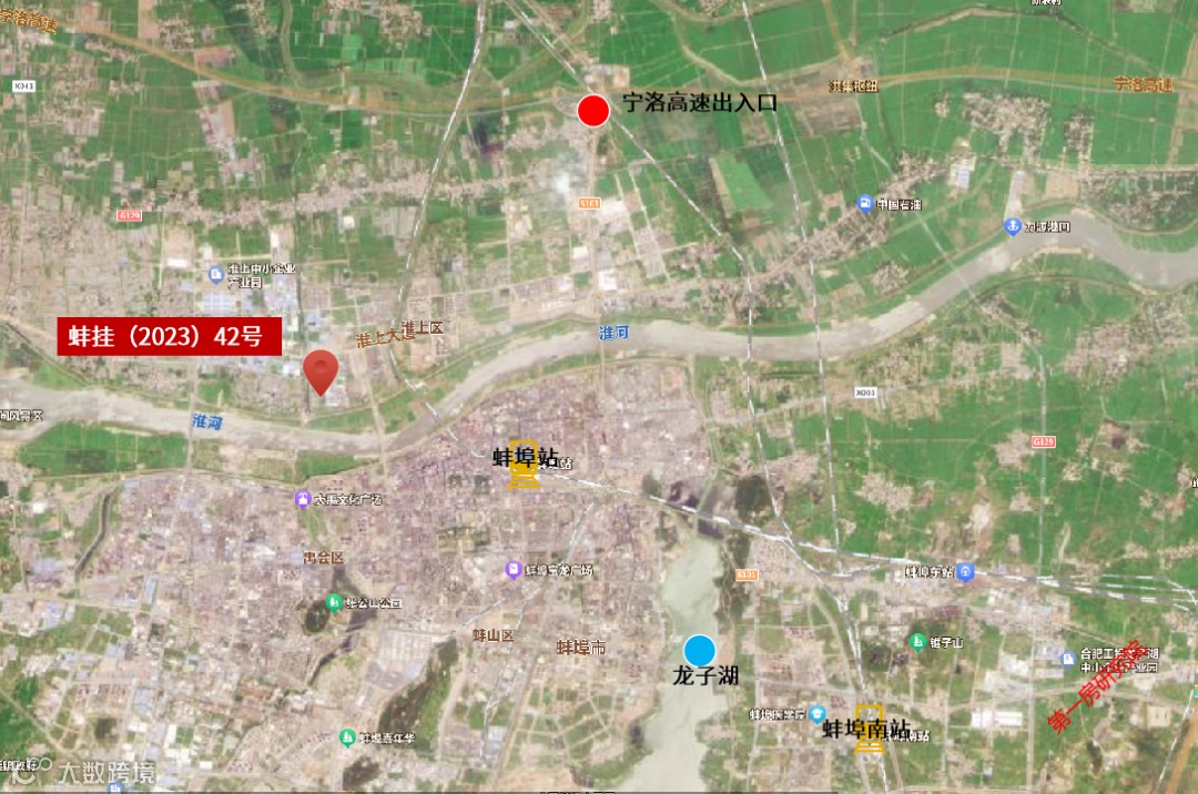 本次出让的蚌挂(2023)42号地块坐落于蚌埠市淮上区,距离蚌埠南站14.1公里,距离蚌埠站5.7公里,距离宁洛高速出入口10.2公里。