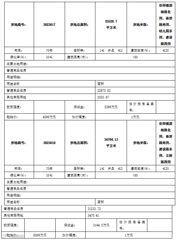 5、合同签订:2023017号、018号宗地出让成交后10工作日内,签订《国有建设用地使用权出让合同》。竞得人不按规定时间签订土地出让合同,取消其竟得资格,已缴纳的竞买保证金不予退还。