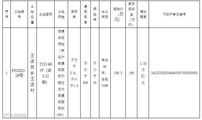 六、本次国有建设用地使用权拍卖会定于2023年12月8日15时在阜南县公共资源交易中心举办。