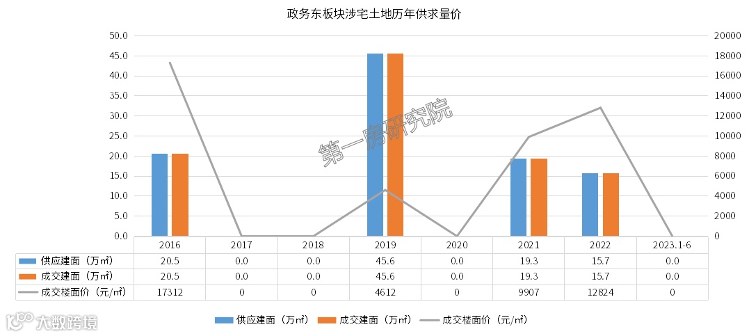 土地市场方面,近7年里有3年未有土地供应,土地“稀缺”在该板块已是常态。年均供应建面12.64万㎡,年均成交12.64万㎡,供应成交率100%,土地市场居高不下。