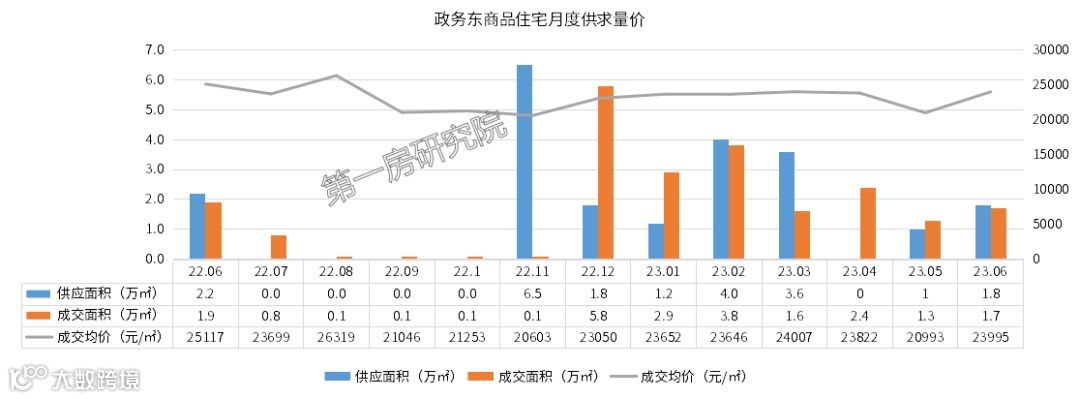 存量及去化周期方面,政务东板块近1年存量维持在1.98万㎡,去化周期维持在1个月左右,市场供不应求的态势明显。