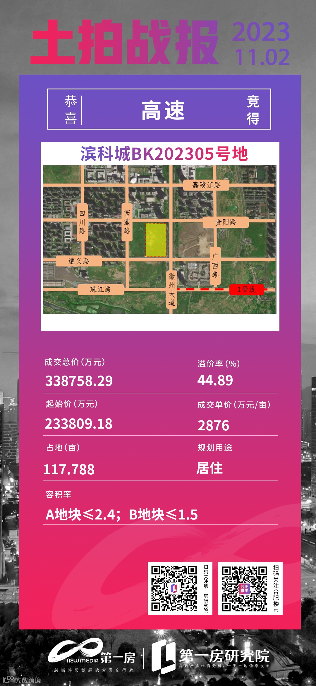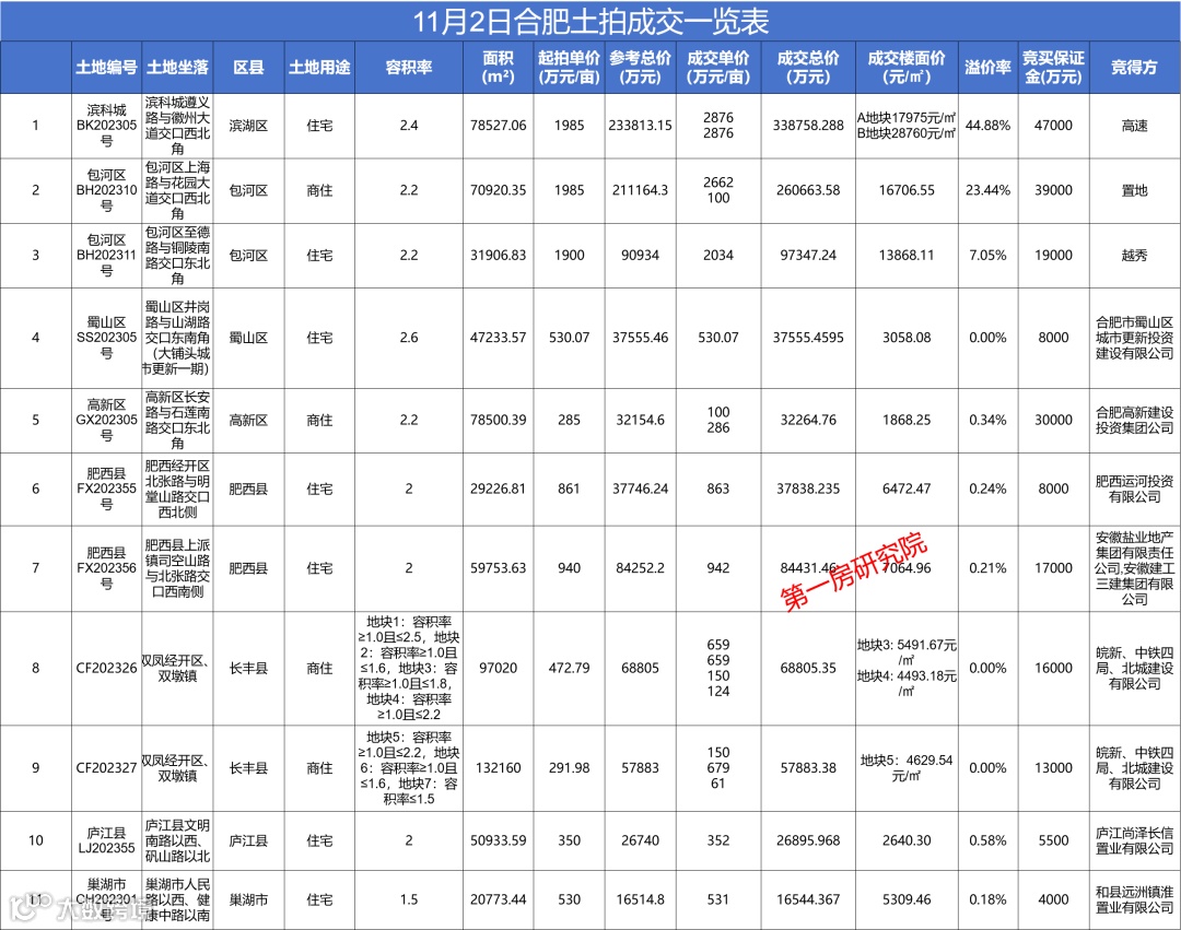 合肥再现地王!11月2日成交11宗1045亩,揽金105亿!