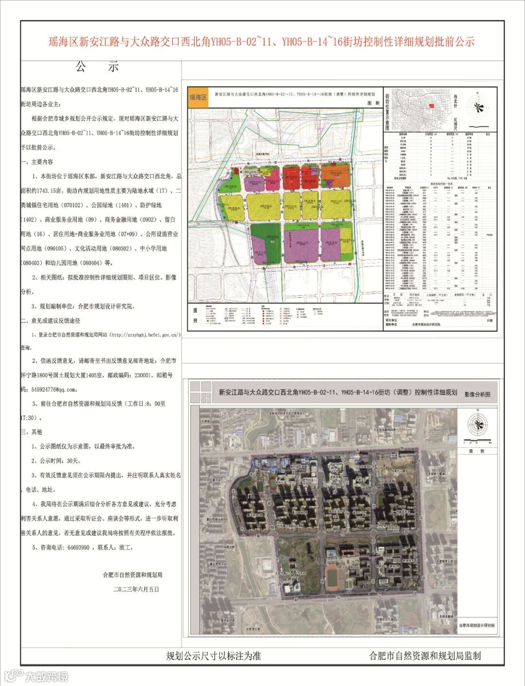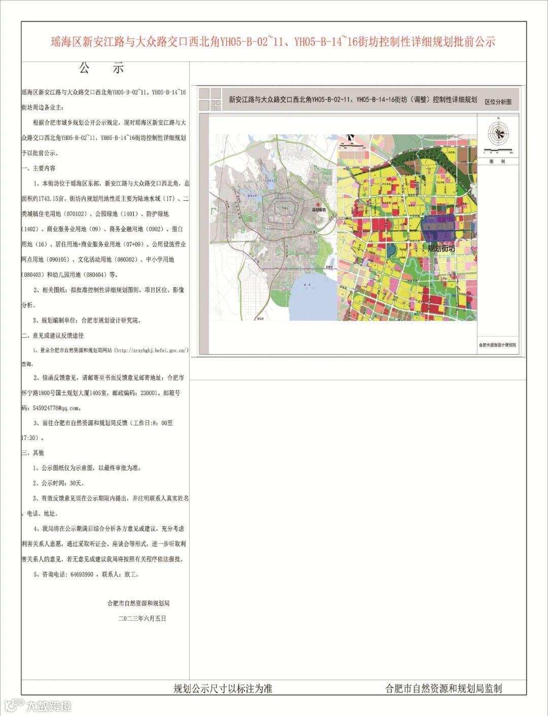 市自然资源与规划局网站公示了瑶海区新安江路与大众路交口西北角YHO5-B-02~11、YHO5-B-14~16街坊控制性详细规划批前公示。