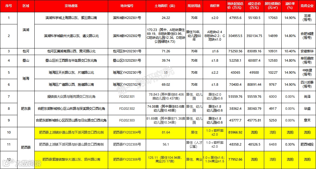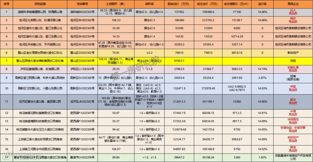 1、2023年合肥前两轮土拍热度回暖明显,房企拿地积极性上涨。